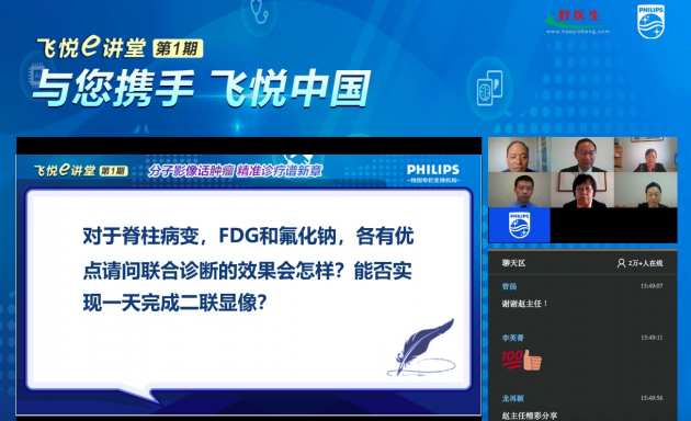 5月17日,“飞悦e讲堂”在线讲堂第一场来袭。在《分子影像话肿瘤 精准诊疗谱新章》的主题之下,来自四川大学华西医院李林教授、上海交通大学附属第一人民医院赵晋华教授、河北医科大学第四医院赵新明教授、复旦大学附属肿瘤医院宋少莉教授出席直播并结合PET-CT在临床实际应用进行分享。 直播期间,参与直播人次超2.1万人。