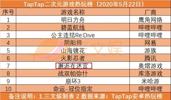 本周,《明日方舟》依旧位列TapTap安卓热玩榜第二位,仅次于王者荣耀,成为本周最热门的二次元游戏,目前有789.5万安装,392.3万人关注。之前一直维持颇高热度的《公主连结》和《山海镜花》热度都有所回落,来到了第3和第5的位置。