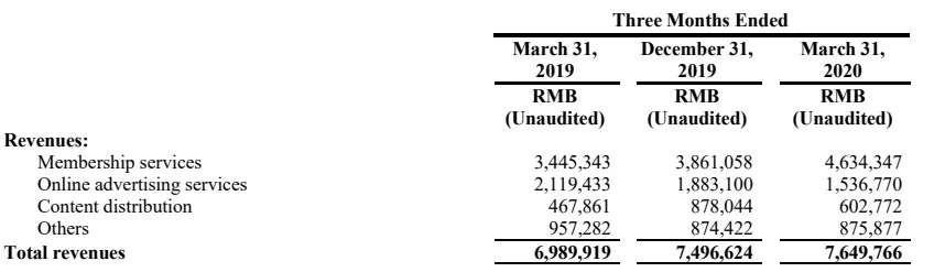 爱奇艺一季度在线广告业务营收15亿元,同比下滑27%;内容分发业务营收6.03亿元,同比增长29%;其他营收为人民币8.76亿元,同比下降9%。