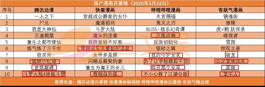 腾讯动漫方面,本周排名榜首的是《一人之下》,截至5月22日,《一人之下》更新到了第499话,累计收获152.8万讨论数,本周获得3.6万张月票。