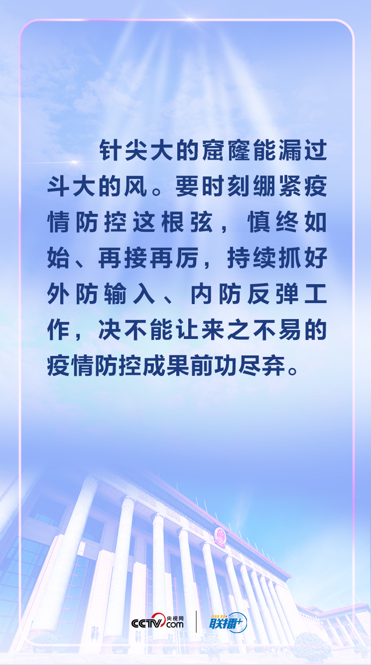 当前,境外疫情扩散蔓延势头仍然没有得到有效遏制,国内个别地区聚集性疫情仍然存在,湖北有时还出现散发零星确诊病例,无症状感染者每天还有新增。习近平用一句“大白话”讲明了加强疫情防控的重要性。