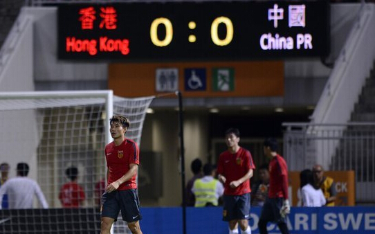 直到比赛第76分钟,中国队迎来了全场最好的机会。于海左路下底传中,杨旭头球摆渡,站在禁区内的于大宝无人防守,从容地凌空抽射,虽然第一次打门被扑出,但他随即在失去平衡的情况下完成第二脚打门——皮球弹地后滚向球门线,但主队门将还是把球捞出。就当中国球员示意已经进球时,当值主裁判却未予理会。不过从慢镜头回放看,皮球的整体已经越过球门线,由于裁判的失误,中国队与“进球”擦身而过。比赛最后时刻,中国队再度发动进攻,替补出场的毕津浩完成一次头球攻门,但皮球又不偏不倚地击中了门柱——这已是中国队在两场与中国香港的较量中,第8次把球打中门框。最终,中国男足只能遗憾地收获平局。