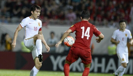 如同11年前一样,中国队身披的战袍,依然是白色。这是一场气氛微妙的比赛,虽然可以容纳8500人的旺角大球场上下一片红,但是从深浅有别的两个红色方阵中,喊出的却是截然不同的口号。比赛伊始,中国香港球迷气势很盛,伴随着本队球员每一次成功的防守、拦截、传中,他们不断地壮大声势,高声呐喊。开场15分钟,虽然中国队占据了控球优势,但出任左右边前卫的武磊和吴曦明显不太适应佩兰此役排出的新阵型(4411),中国队并没有在两个边路制造出太大威胁。第21分钟,中国香港完成了一次射门,这也是本场比赛双方的第一次打门。