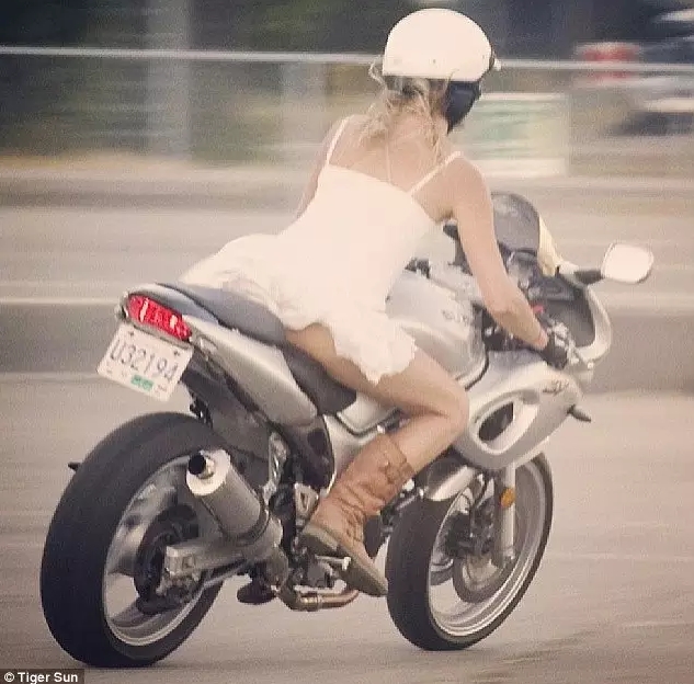 她穿着小白裙,骑着机车,