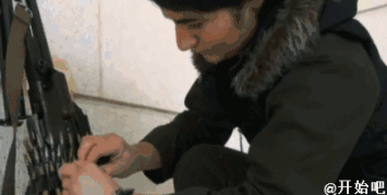 悉心学习如何给枪上膛。