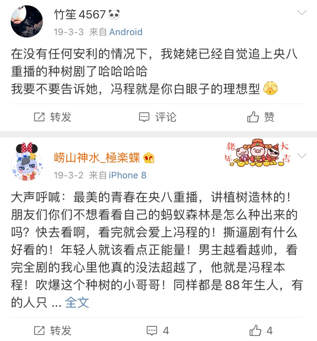 这方面,一个的正面例子是2018年的改革开放献礼剧《最美的青春》。该剧由郭靖宇团队打造,以塞罕坝几代造林人的先进事迹为原型,讲述了上个世纪60年代初,以主人公冯程为代表的一批年轻人开荒造林的故事。