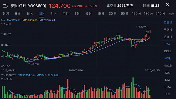 值得玩味的是,在财报发布前夕,美团点评股价迎来一波上涨。截止今日收盘,美团涨幅6.16%,报125.8港元,最新市值7330亿港元。相比昨日118.5港元收盘价,美团一天之内大涨近400亿元人民币。