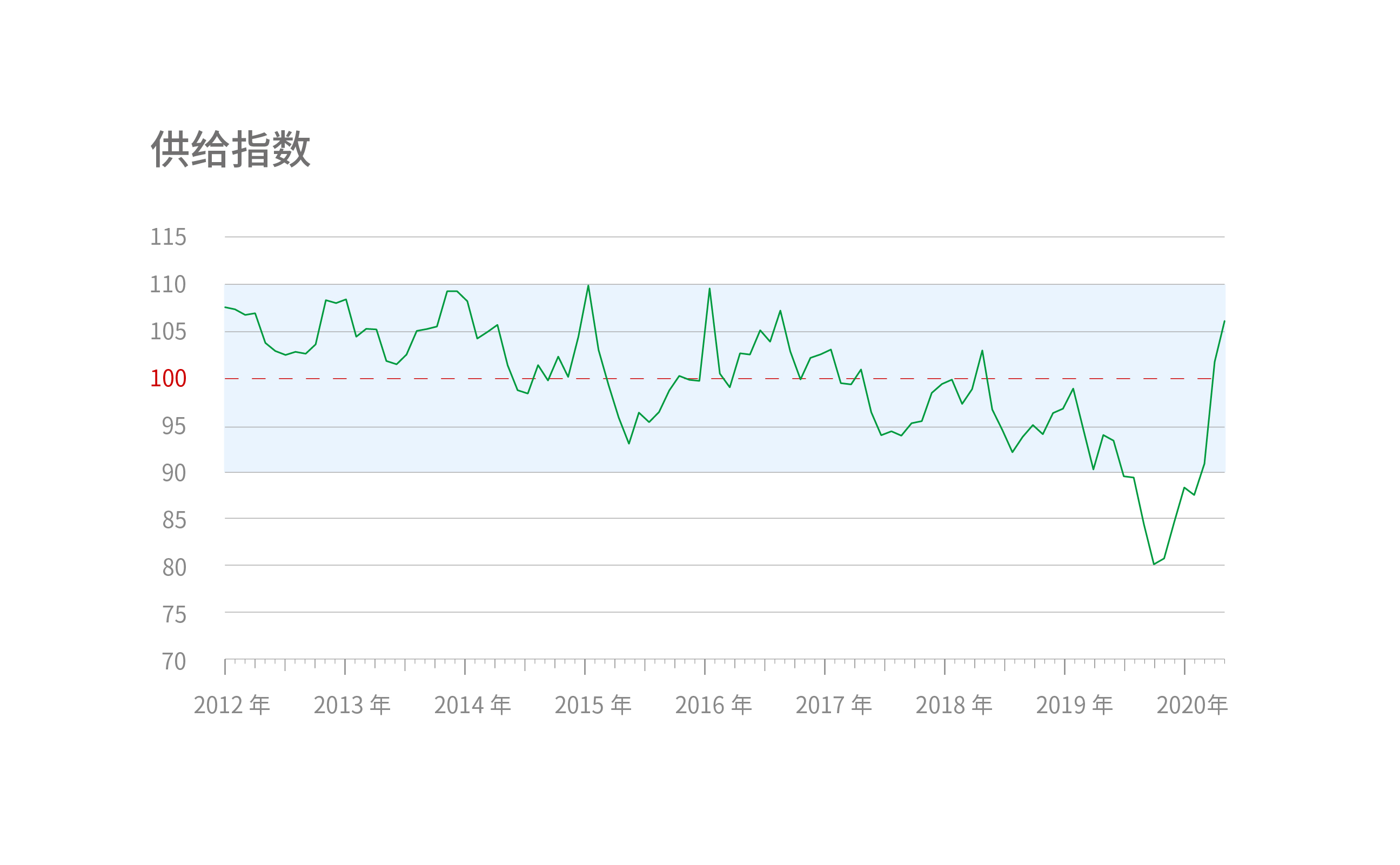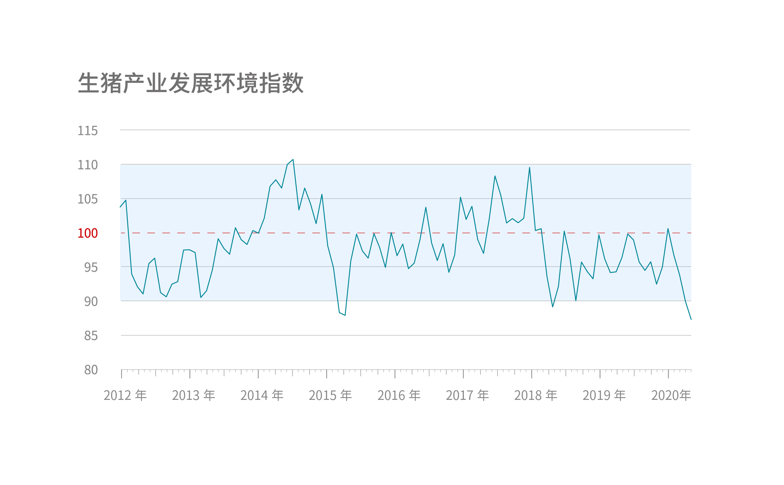 生猪产业发展指数以90-110作为标准区间,在此区间内表示产业运行较为平稳,此区间以外均表示生猪产业运行存在异常。低于90视为产业“过冷”,高于110视为产业“过热”。