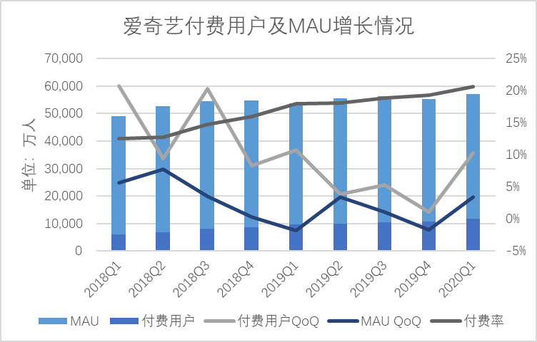 2020年一季度,由于疫情的影响,在线娱乐APP都收获了包括用户数量增长、用户使用时长增加等一系列红利。财报显示,无论是付费用户数量、MAU数量还是付费用户率都有明显提升。