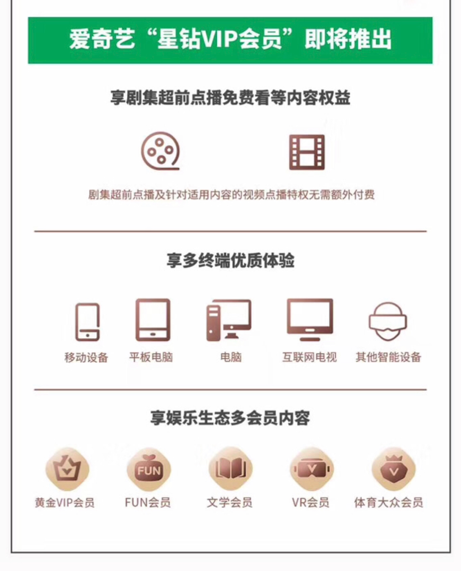 为了实现这一目标,爱奇艺率先启用了“会员付费超前点映”模式。5月23日,爱奇艺推出星钻会员,连续包月价格为40元,相比25元的黄金VIP会员包月价上涨了60%。