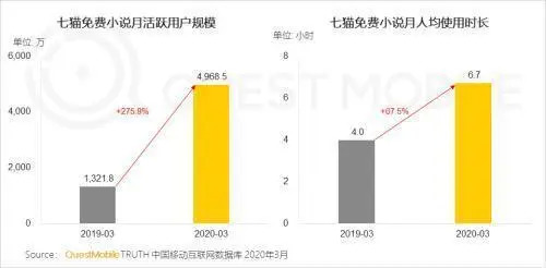 Questmobile数据显示:在疫情期间,个别免费小说APP的用户数量与人均时长都有了大幅提升