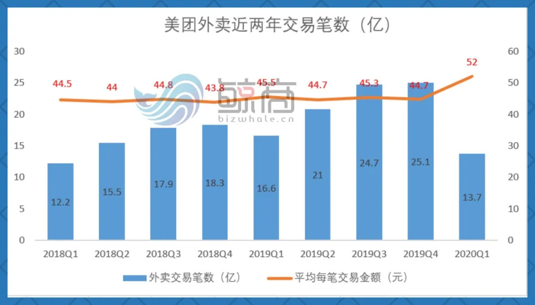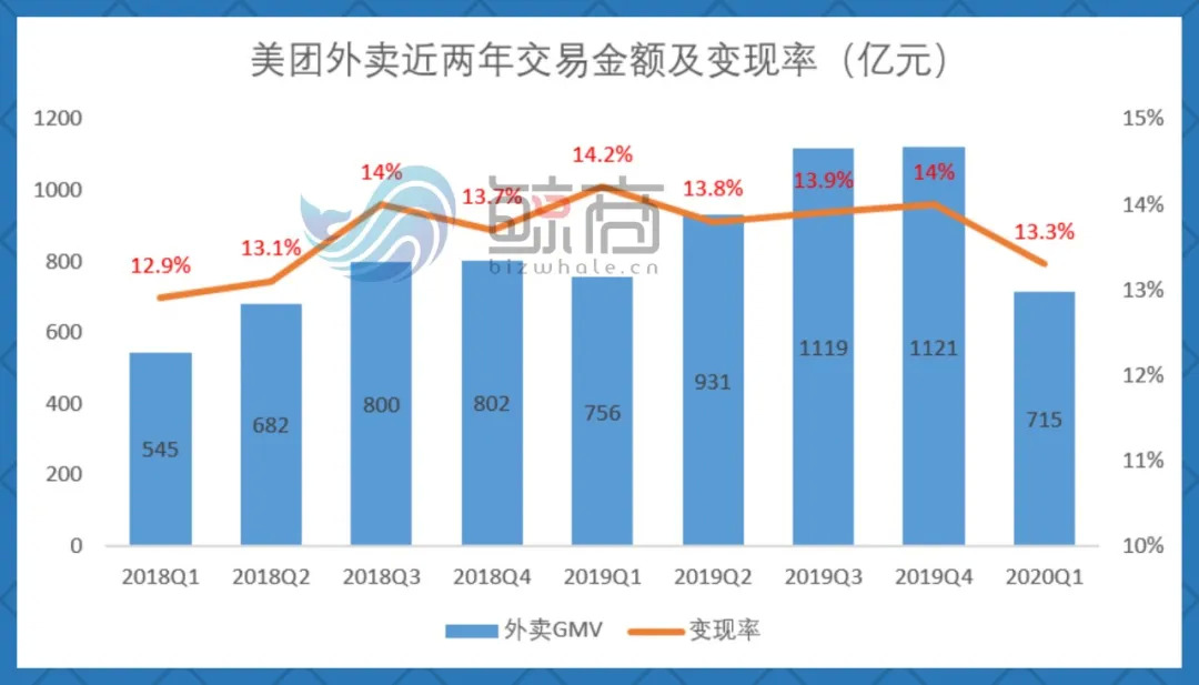 疫情到来,把外卖、酒店业务一锅端了。到店、酒旅业务非但消费间夜量同比下降45.5%至4280万,造成佣金收入腰斩,盈利缩减31%至31亿元,线下酒店经营状态也确实极为惨淡。而且美团CFO陈少晖表示,到店业务的恢复比外卖慢得多,完全重建消费信心所需的时间相对较长,供应链也受到影响。预计第二季度店内业务的收入增长仍将为负数。这意味着疫情前的现金牛业务可能需要反向输血,来避免资金周转不足。美团外卖业务持续承压,除了Q1新增至少46万骑手的工资及疫情间支付的激励成本,餐饮外卖交易也遭遇滑铁卢,总交易金额同比就下降5.4%至715亿元,环比2019年底的1121亿元差了更多。