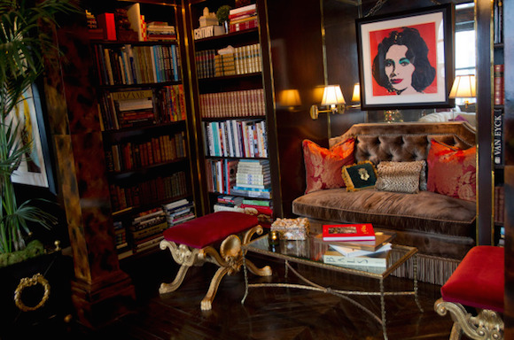 今年64岁的希尔费格依然保持着男孩式的外表:结实如青少年一样的体格,金发明显比灰发更多。他微笑时会爽朗地露出整排牙齿,就像一只柴郡猫,不同于沃霍尔,他为人处世更加平和,甚至有那么一点冰冷的风度。希尔费格带领着我参观了他的寓所,他和他的第二任妻子迪·奥赛乐博(Dee Ocleppo)从伊夫·圣·洛朗(Yves Saint Laurent)巴黎寓所随处可见的折中主义中找到了设计灵感。“我们想要让它复归到本初的美,复归到旧世界的魔力和魅力。”他说,“同时加入一些现代艺术和某种现代情怀。”因此,拥有猩红色的窗帘、暗色的木制品、豹纹凳子以及边缘垂挂着红绿流苏的象牙沙发的起居室以一种光怪陆离的格调俯瞰着整条第五大道。