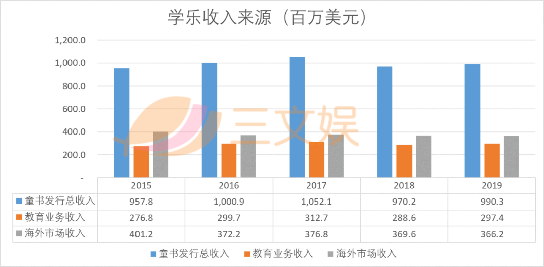 根据市场调研机构IBISWorld提供的数据,现在童书出版市场整体规模在20亿美元左右,学乐2019财年在美国童书市场的销售额就达到了9.9亿美元,一家公司就占据一半市场份额。