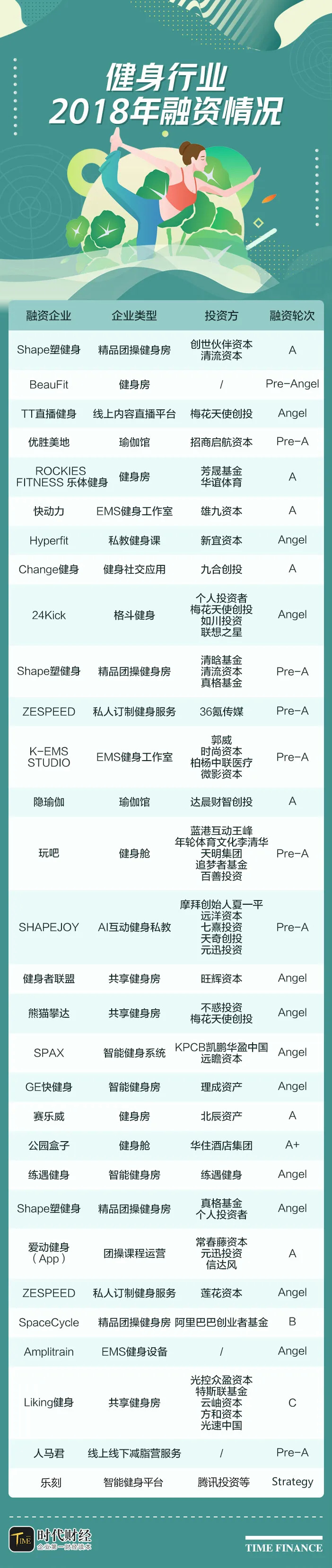 据时代财经不完全统计,健身行业2017年融资高达45起;2018年下降至30起;而2019年以来,将近一年半的时间,融资仅有19起。