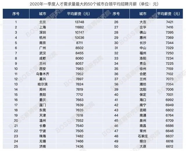 数据来源:BOSS直聘研究院《2020一季度人才吸引力报告》