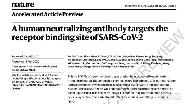 ▲《自然》杂志发表论文《以SARS-CoV-2的受体结合位点为靶点的人类中和抗体》