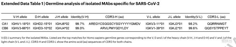 ▲针对SARS-CoV-2的分离单克隆抗体的种系分析