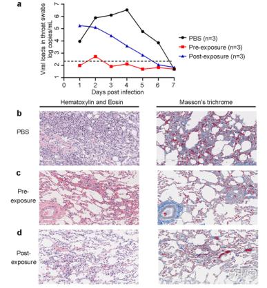 ▲CB6单抗能有效降低恒河猴病毒载量,减轻与感染相关的肺损伤
