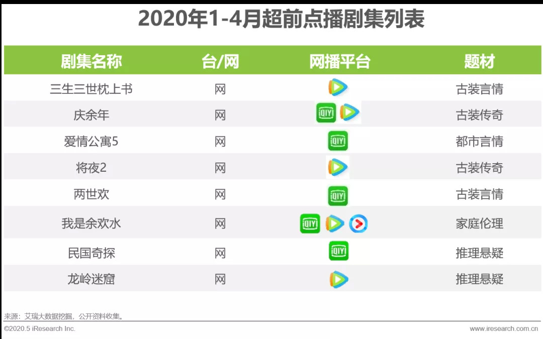 2020年1-4月高流量剧集TOP15