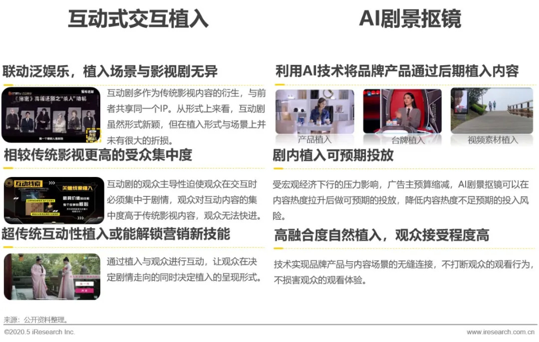 互动式植入重在交互,观众与内容互动的同时对品牌高度关注;AI剧景抠镜重在回报的可预期与观众体验。