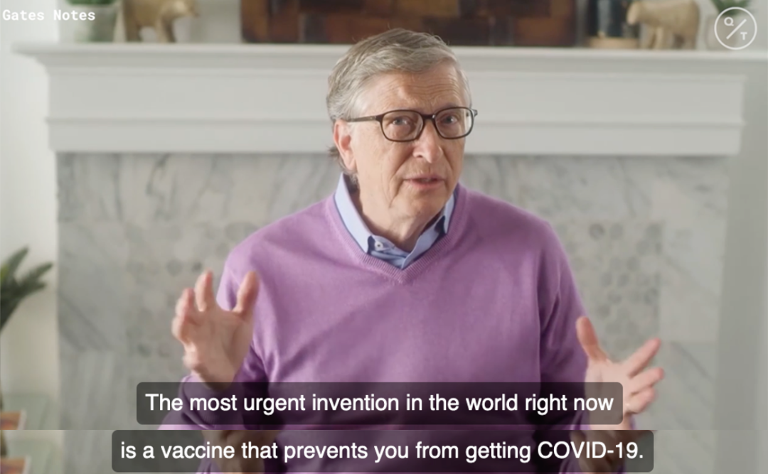 “目前世界最紧急需要的发明,就是保护你不得Covid-19的疫苗。”