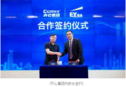 发布会上,齐心集团与SAP完成战略合作签约仪式,同时,安永作为数字化运营项目的咨询合作伙伴,与齐心集团签订了全面数字化合作意向书,负责齐心集团数字化智能管理平台建设的咨询与落地实施。
