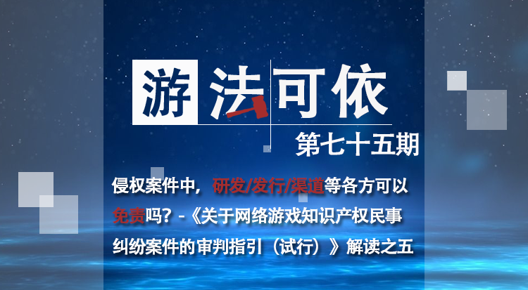 在第七十五期的《“游”法可依》当中,杨杰律师团队将为大家带来——《侵权案件中,研发/发行/渠道等各方可以免责吗?-《关于网络游戏知识产权民事纠纷案件的审判指引(试行)》解读之五。