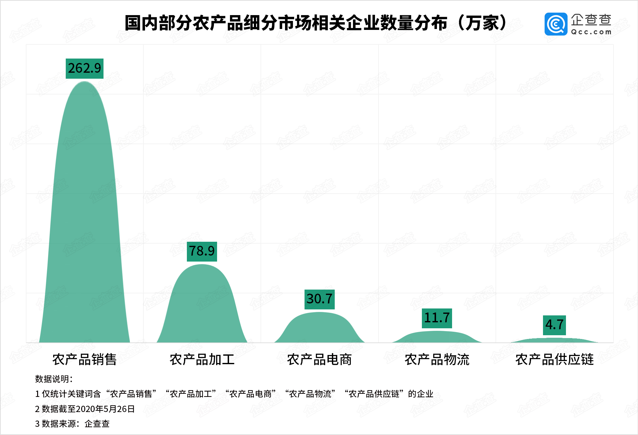 伴随着农业快速发展,农产品滞销的问题凸显,为了解决这一问题,很多人瞄准了电商市场。近年来,农产品电商迅猛发展,农产品物流、供应链也应运而生,为农产品上行开辟了新通道。据企查查数据显示,农产品电商、物流、供应链相关企业数量分别为:30.7万家、11.7万家、和4.7万家。