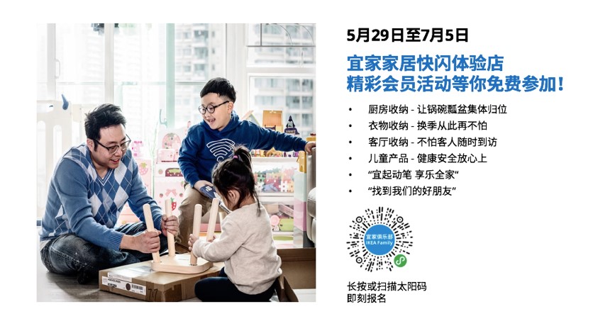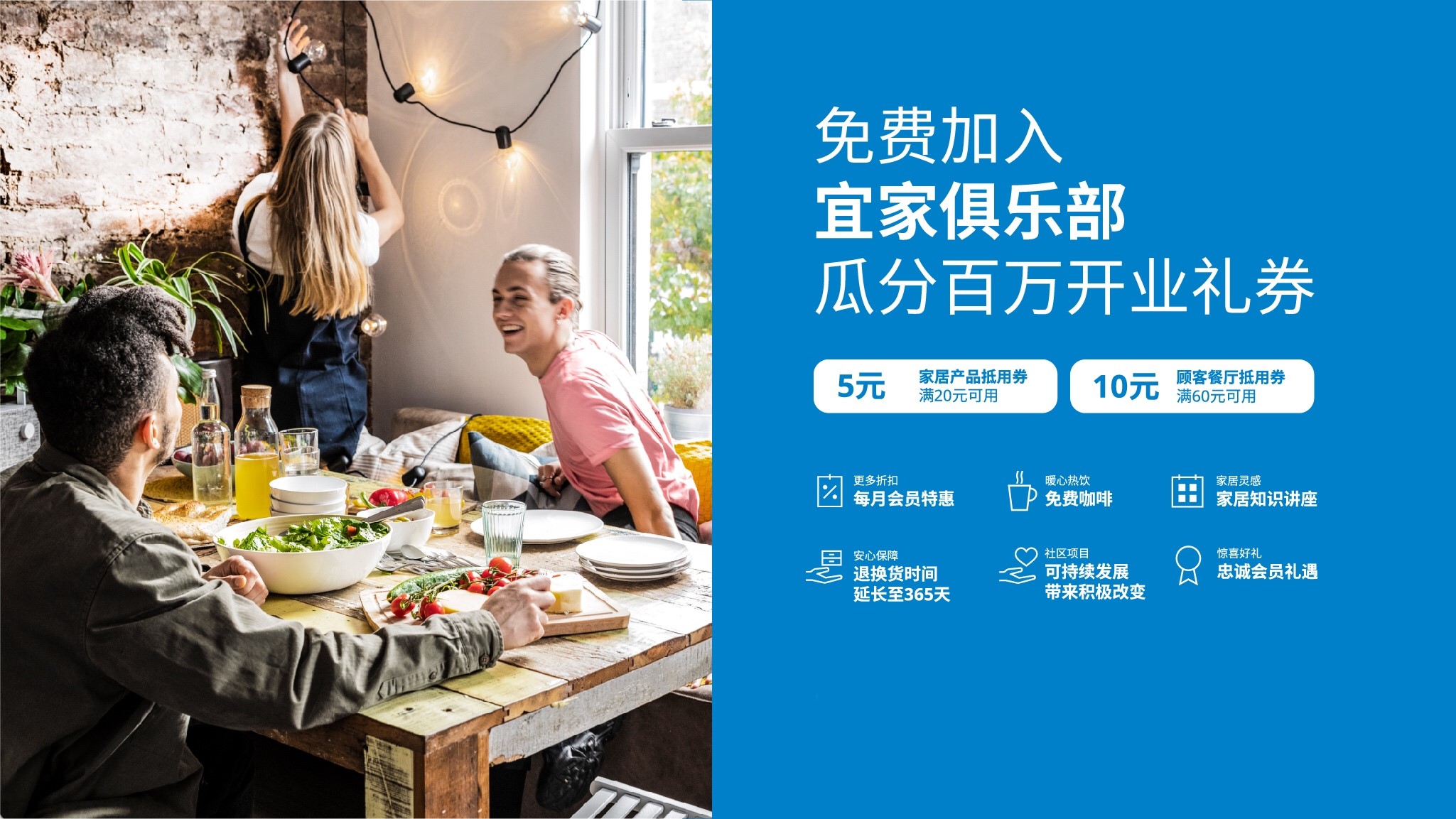 现在注册成为新会员,除专享宜家俱乐部六重会员权益,还可领取宜家开业礼券,及免费报名参加精彩会员活动。