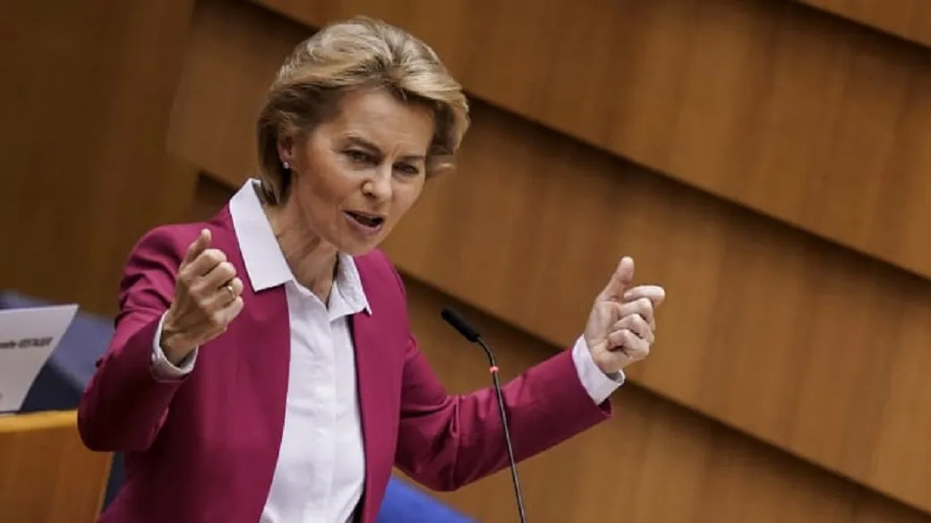 5月27日,欧盟委员会主席冯德莱恩在欧洲议会全体会议上进行讲话。(图片来源:法新社)