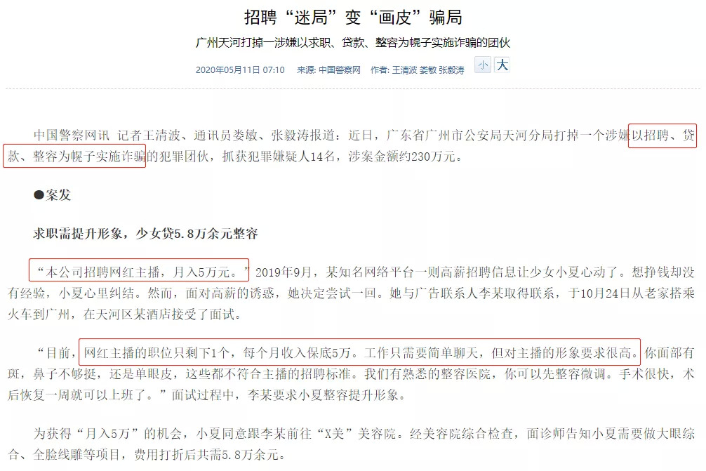 还有骗子盯上求职女性,设下整容贷款陷阱,不还钱还被威胁“肉偿”。