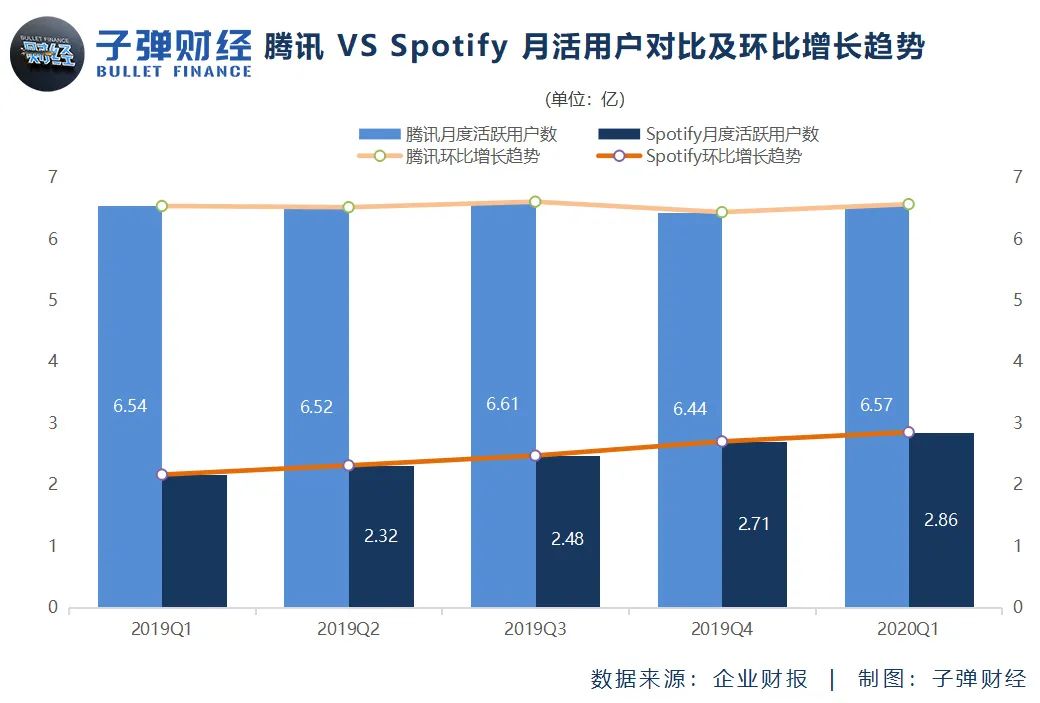 国外音乐流媒体平台Spotify一季度财报显示,其月活跃用户为2.86亿,同比增长31%,然而令人深感惊讶的是,虽然Spotify的月活跃用户仅为腾讯音乐的三分之一有余,但其在全球范围内却拥有1.3亿付费用户,付费比例高达45.5%,付费用户贡献的营收占比近90%。