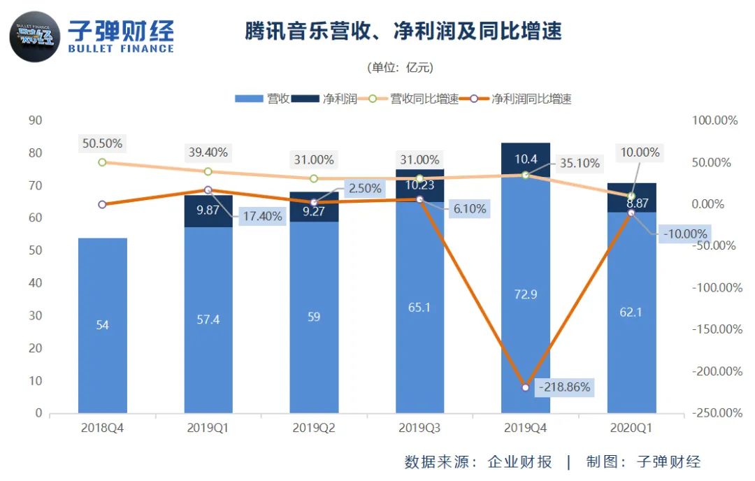 近日,腾讯音乐发布了2020年第一季度财报,报告期内腾讯音乐的营收为63.1亿元,同比增长10.0%。仅仅是从字面上来看,腾讯音乐的确保持了10%的营收增速,但这一成绩相较去年明显大幅放缓。