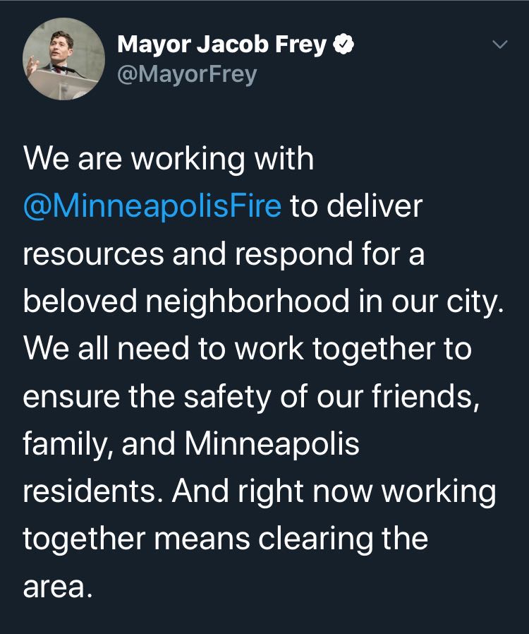 明尼阿波利斯市市长弗雷表示正积极应对火情