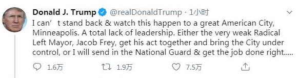特朗普与明尼苏达州州长通电话 威胁将对骚乱者动用武力