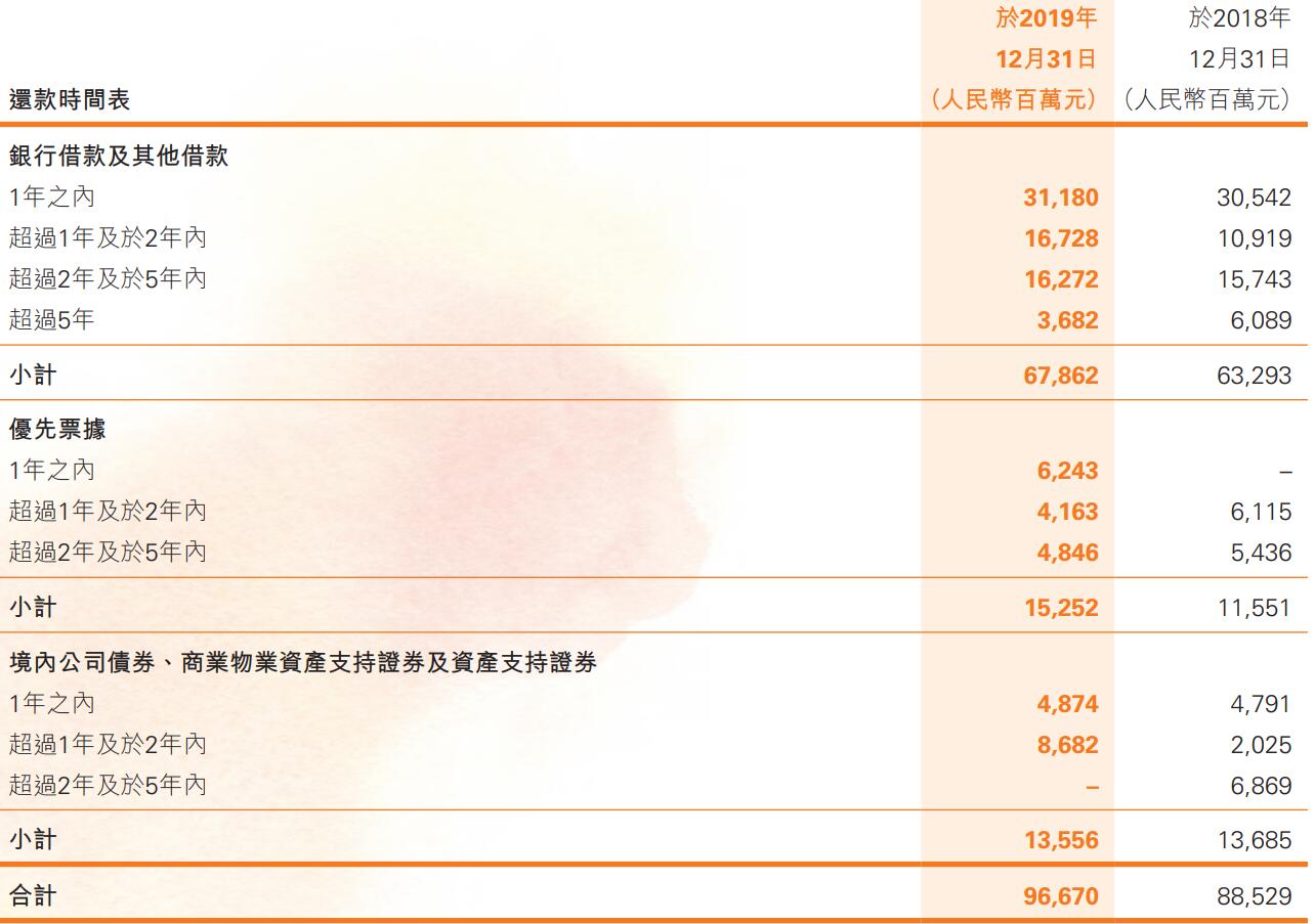 此外如上图,优先票据、债券等,1、2年内要还的,分别还有数十亿元不等。加起来,也是一个大数字。
