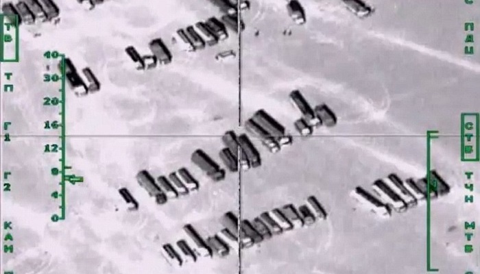 在莫斯科的新闻发布会上展示的照片,显示了数百辆运油车是如何排成车队运油的。他说,近年来ISIS和其他极端组织打造了所谓“轮子上的石油管道”,而摧毁500辆油罐车“大大降低了恐怖分子非法出口能源的能力以及他们靠走私石油换来的收入”。