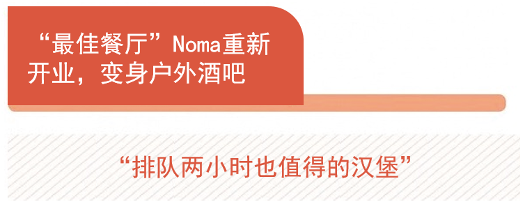 近日,受疫情影响的丹麦“最佳餐厅”Noma 宣布重新开业,成为一家户外汉堡和葡萄酒吧。店里提供15美元的简单套餐——芝士汉堡和酒,无需预约,可以直接到店。餐厅会提供宽阔的户外场地,铺上野餐的毯子供顾客使用。首日,现场排队需要两个小时,短短4小时内售出了1300个汉堡,不得不提前关闭。Noma 现提供两款汉堡,芝士汉堡和素食汉堡,并配有啤酒,之后会提供牡蛎、生菜沙拉等其他一般酒吧会提供的食物。