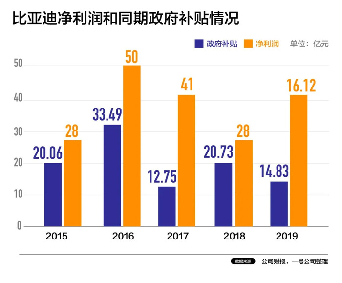 公开资料显示,比亚迪领取补贴的额度,一直位列各大车企首位,到2019年同样如此。