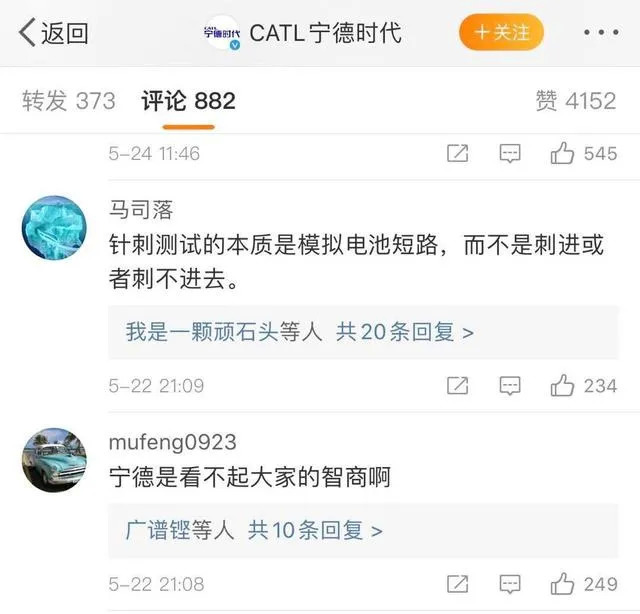 多轮“隔空互怼”之后,醒悟过来的宁德时代选择关闭“针刺试验”话题。