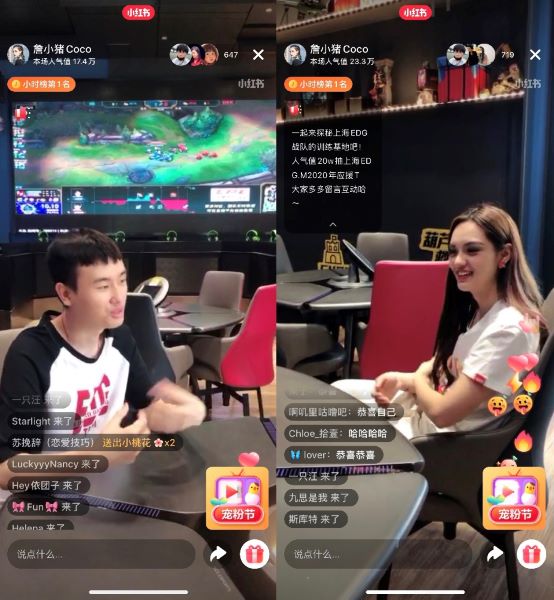 小红书时尚博主詹小猪Coco带着普通观众的视角,在直播当天带网友实地探访了电竞俱乐部EDG的训练基地。直播中,詹小猪Coco用手机镜头记录下电竞队员的生活、训练日常,降低了电竞产业的神秘感,让不少网友高呼“突破了次元壁”。