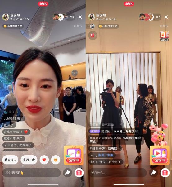 主打互动、场景式体验的直播,是小红书直播的特色。在直播周期间,小红书上包括东瓜嘀嘀、詹小猪Coco、陈逸慧、梅桢小姐姐、杜杜明明没肚肚等在内的多名创作者,通过实地探访、分享体验的直播形式,为网友“种草”文化消费。