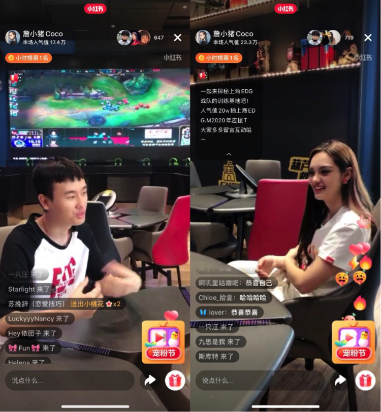 小红书时尚博主詹小猪Coco带着普通观众的视角,在直播当天带网友实地探访了电竞俱乐部EDG的训练基地。直播中,詹小猪Coco用手机镜头记录下电竞队员的生活、训练日常,降低了电竞产业的神秘感,让不少网友高呼“突破了次元壁”。