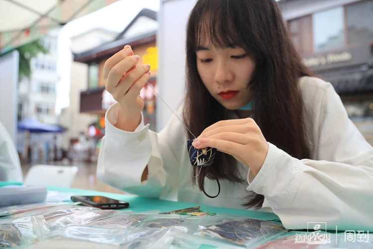 文创产品被誉为“带得走的文化”。在此次集市上,市民游客还可以体验布贴(口罩、t恤、帆布袋等)、香囊制作、叶脉书签、团扇等DIY手作。