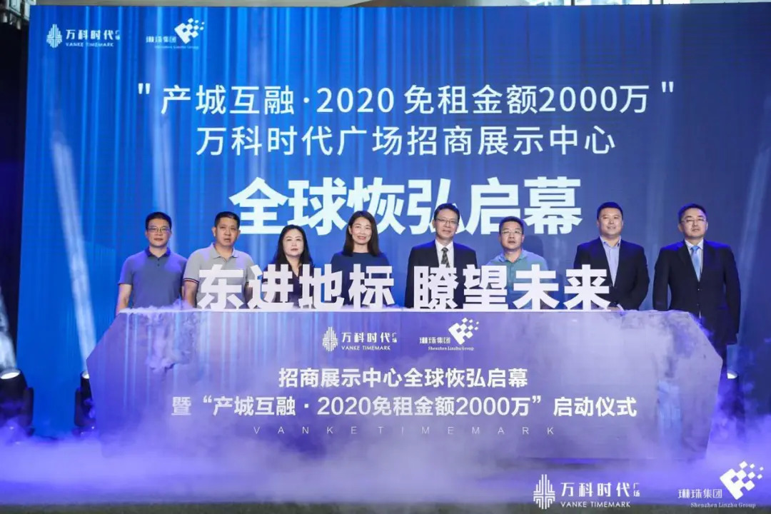 5月30日下午,“东进地标,瞭望未来”琳珠集团万科时代广场全球招商恢弘启幕,暨“产城互融·2020免租金额2000万”启动仪式。这是一场群英云集的荟萃盛宴,更是一场革新商务时代的恢弘新篇。