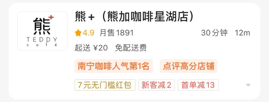 你也许很难想到,这家看上去“平平无奇”的熊+咖啡,在外卖平台月销近2000单。而在疫情之前,他们的外卖月销能做到2400+单。