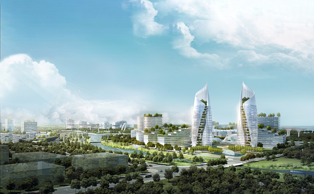 在“信息飞鱼”头部,两栋80米的鱼形双子塔构筑 “双鱼之门”,可成为互联网头部企业的总部首选之地。