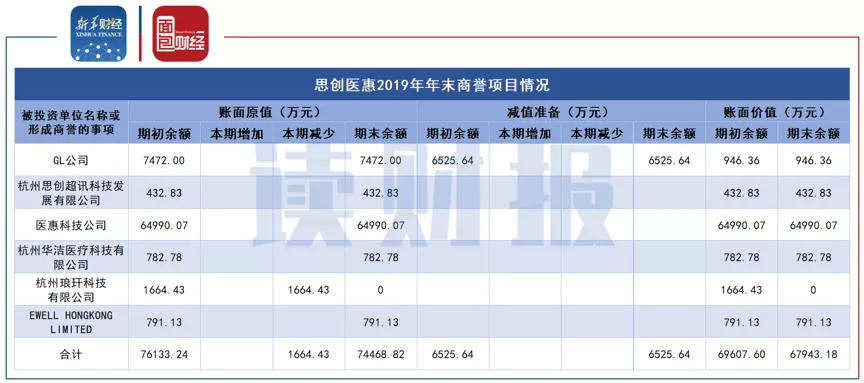 2014年以来,思创医惠陆续通过非同一控制下企业合并的形式收购了医惠科技、GL公司等公司,逐步积累了一定金额的商誉。截至2019年年末,公司商誉项目账面原值7.45亿元,减值准备6525.64万元,账面价值6.79亿元,占公司总资产的16.07%。