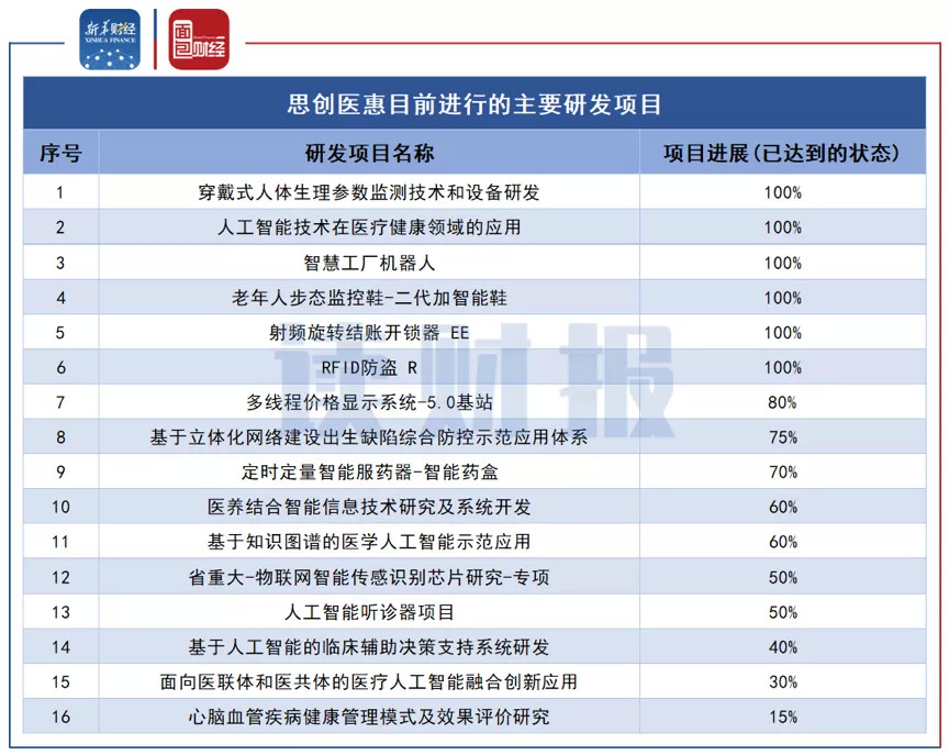 2019年年报显示,思创医惠目前进行的主要研发项目有16个,其中有6个项目进展已到达100%,有3个项目进展不足50%。